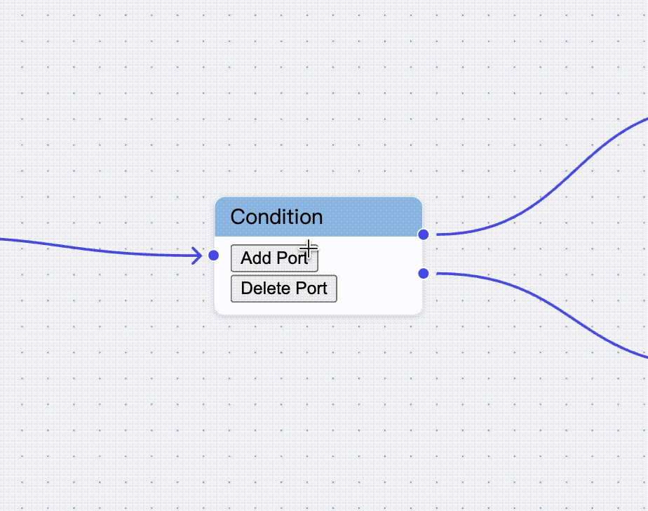 node.ports.updateDynamicPorts()下边 condition 节点通过 表单effect 监听 portKeys 数据并更新端口数据, 详细见 Demo